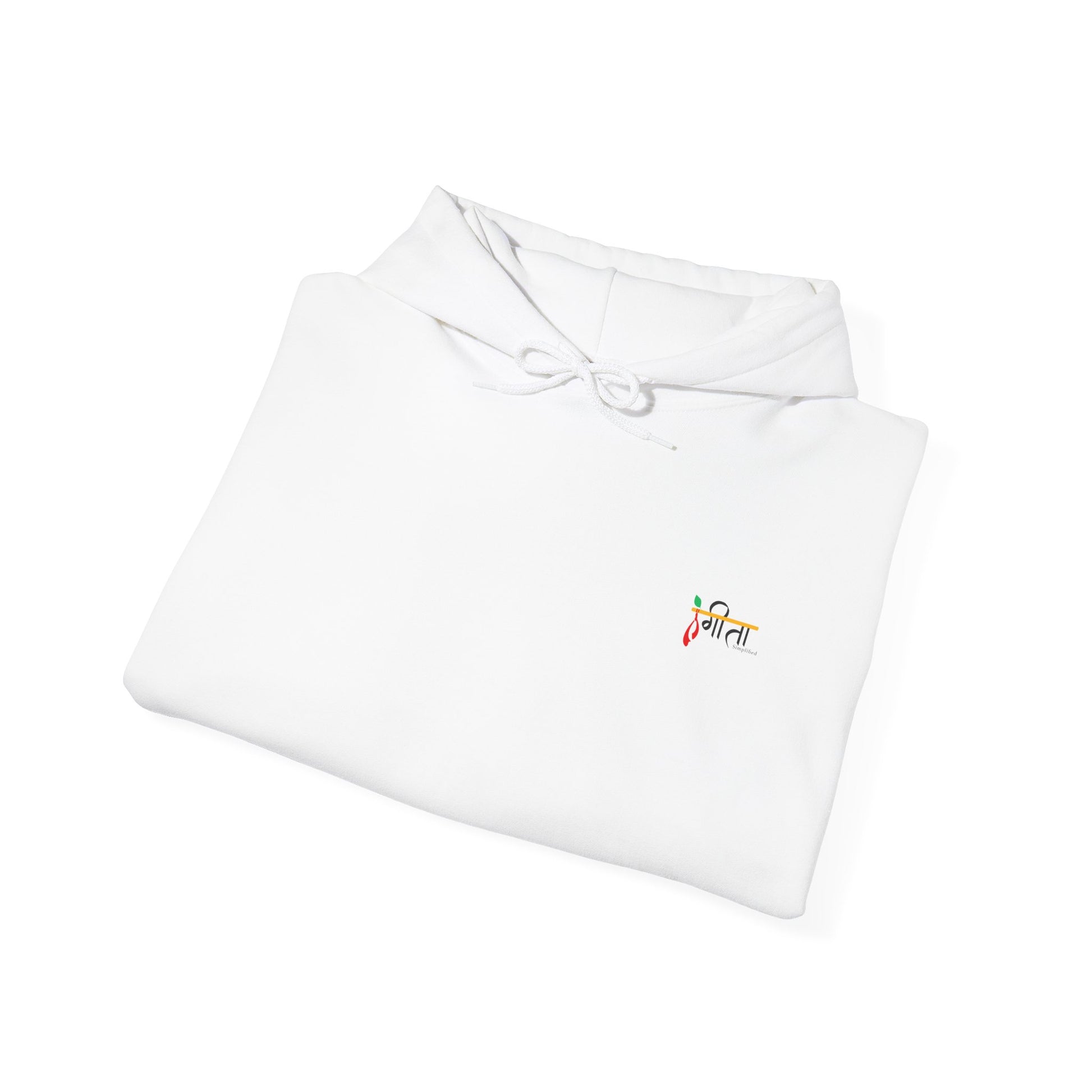 Crafted with an ultra-soft fleece interior and sturdy cotton-poly blend, this multicolor unisex hoodie is as comforting as Krishna’s flute itself. The Gita Simplified logo rests on the front left, while the back tells your story in silhouette and wisdom. Whether you’re meditating, unwinding after work, or navigating difficult transitions—this hoodie becomes your quiet armor of calm.