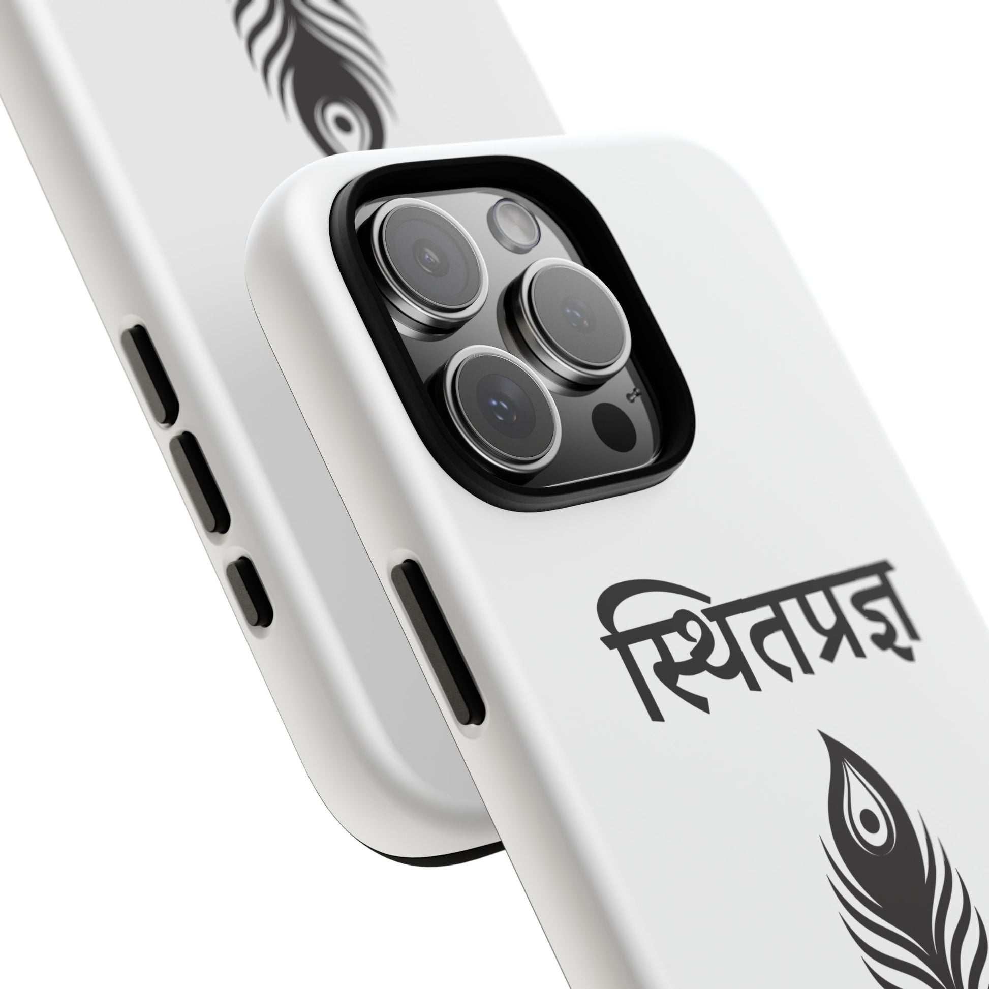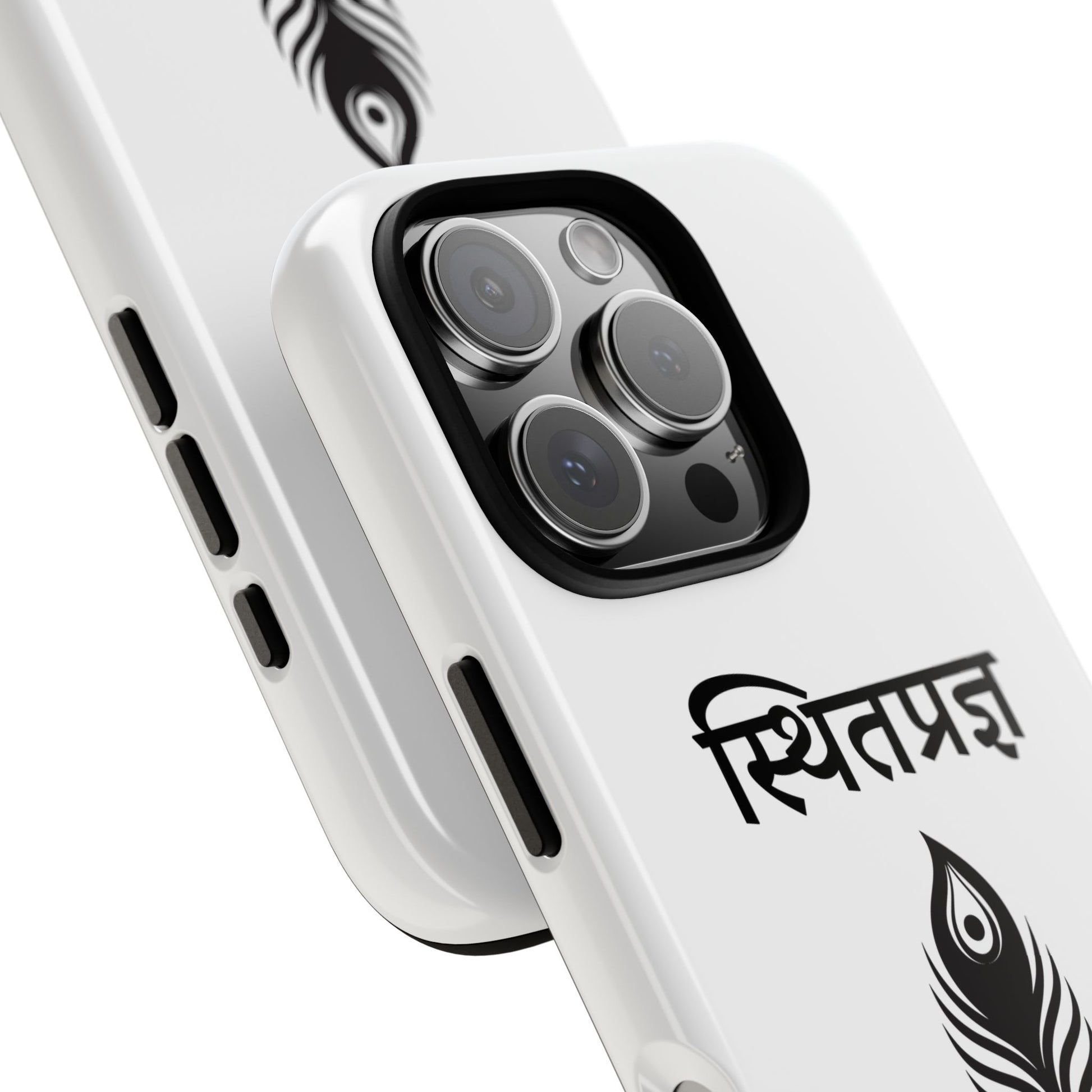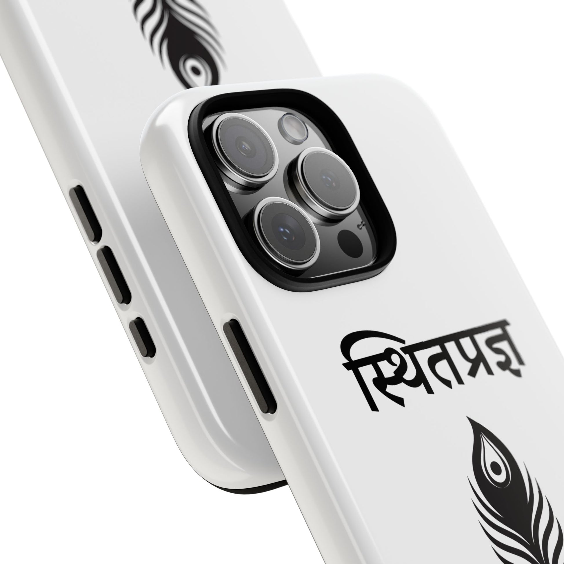 A Symbol of Steady Wisdom Inspired by the timeless teachings of the Gita, this phone case carries the serene power of the word “स्थितप्रज्ञ”—a state of unwavering intellect and calmness, even amidst the chaos. The thick-line peacock feather is more than a motif; it’s a mark of grace and stillness.