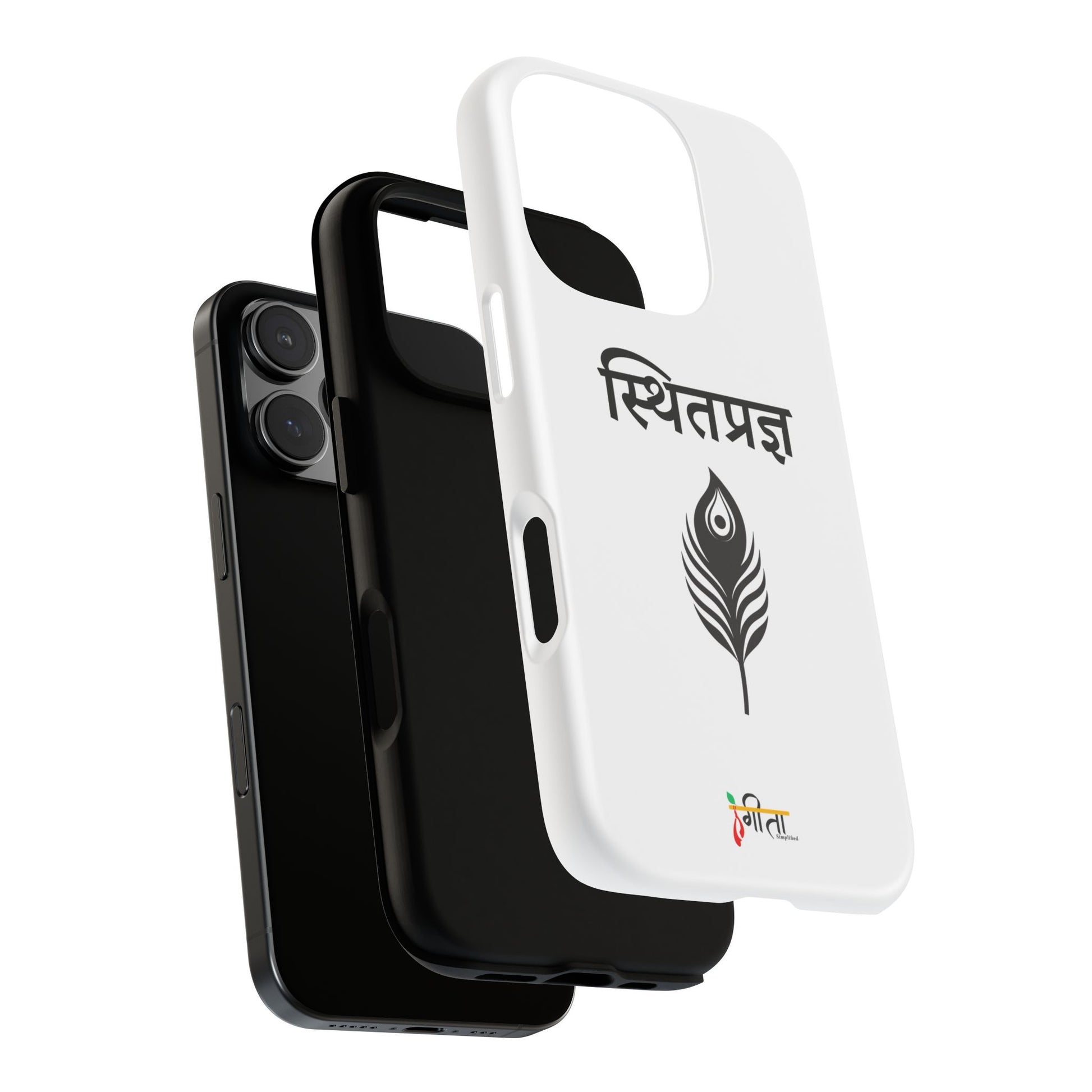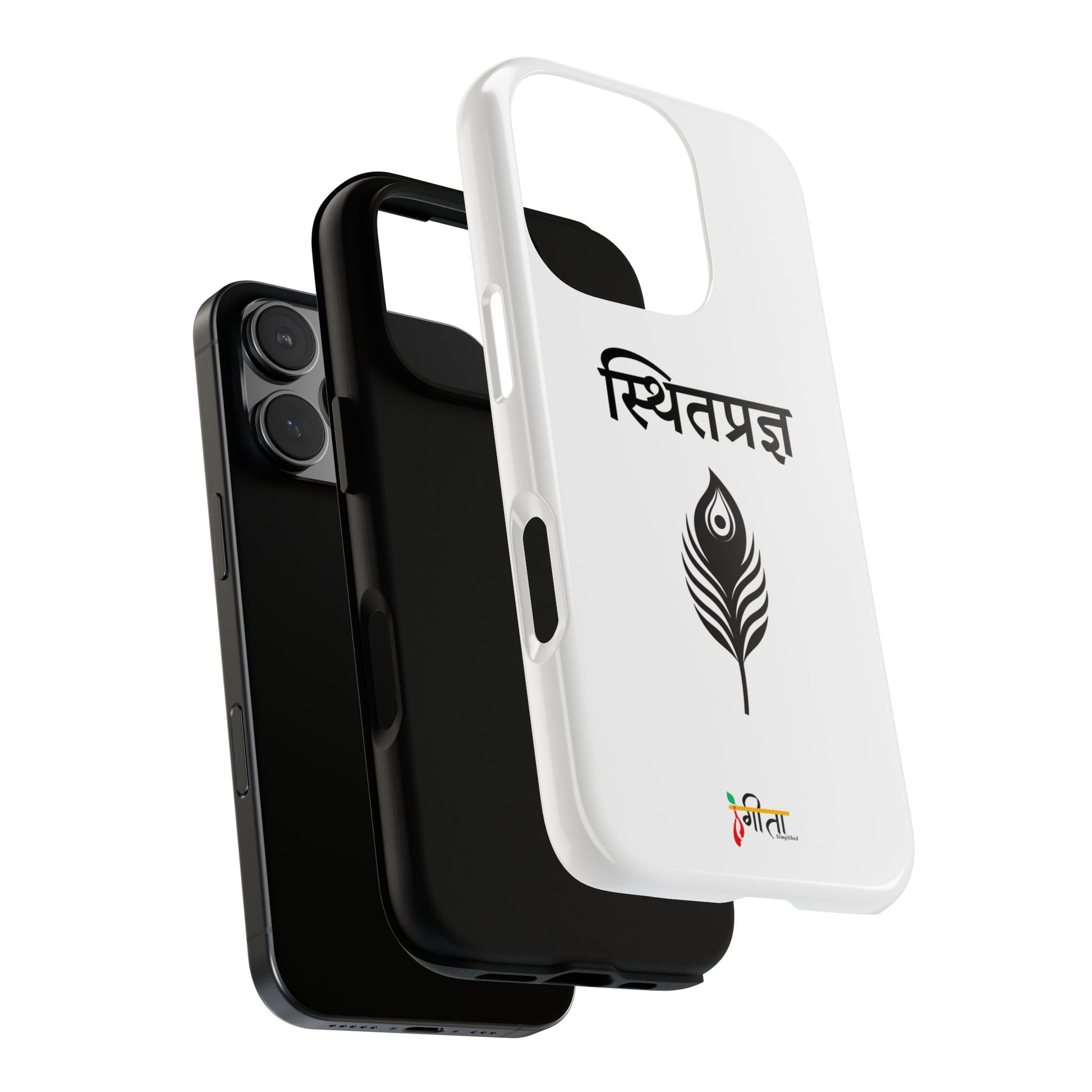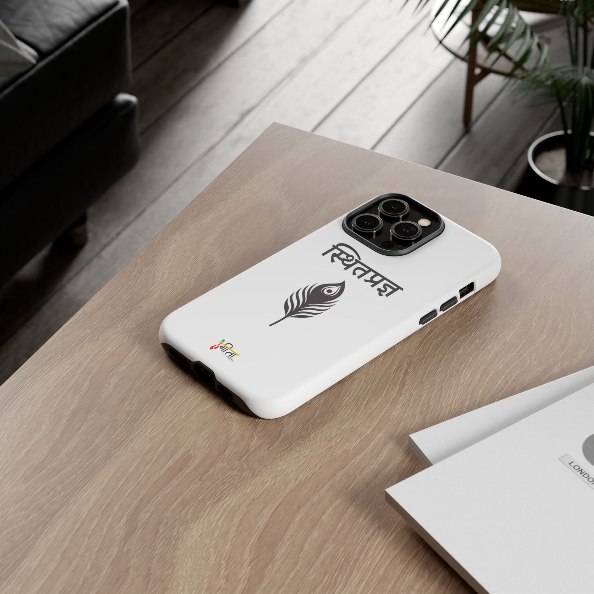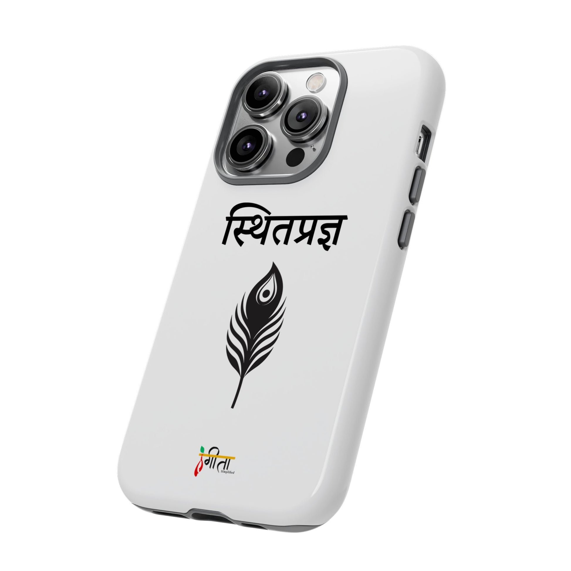 A Symbol of Steady Wisdom Inspired by the timeless teachings of the Gita, this phone case carries the serene power of the word “स्थितप्रज्ञ”—a state of unwavering intellect and calmness, even amidst the chaos. The thick-line peacock feather is more than a motif; it’s a mark of grace and stillness.