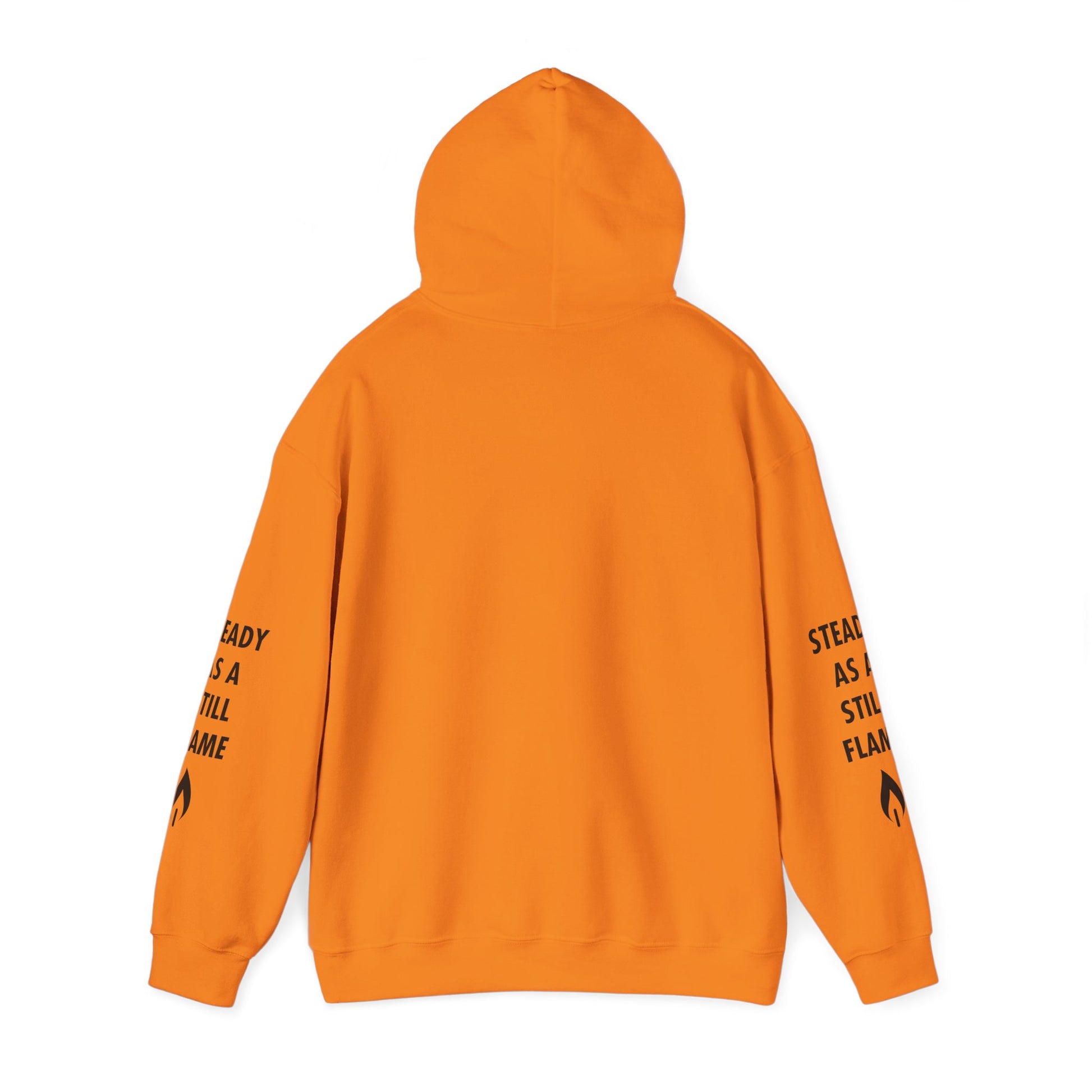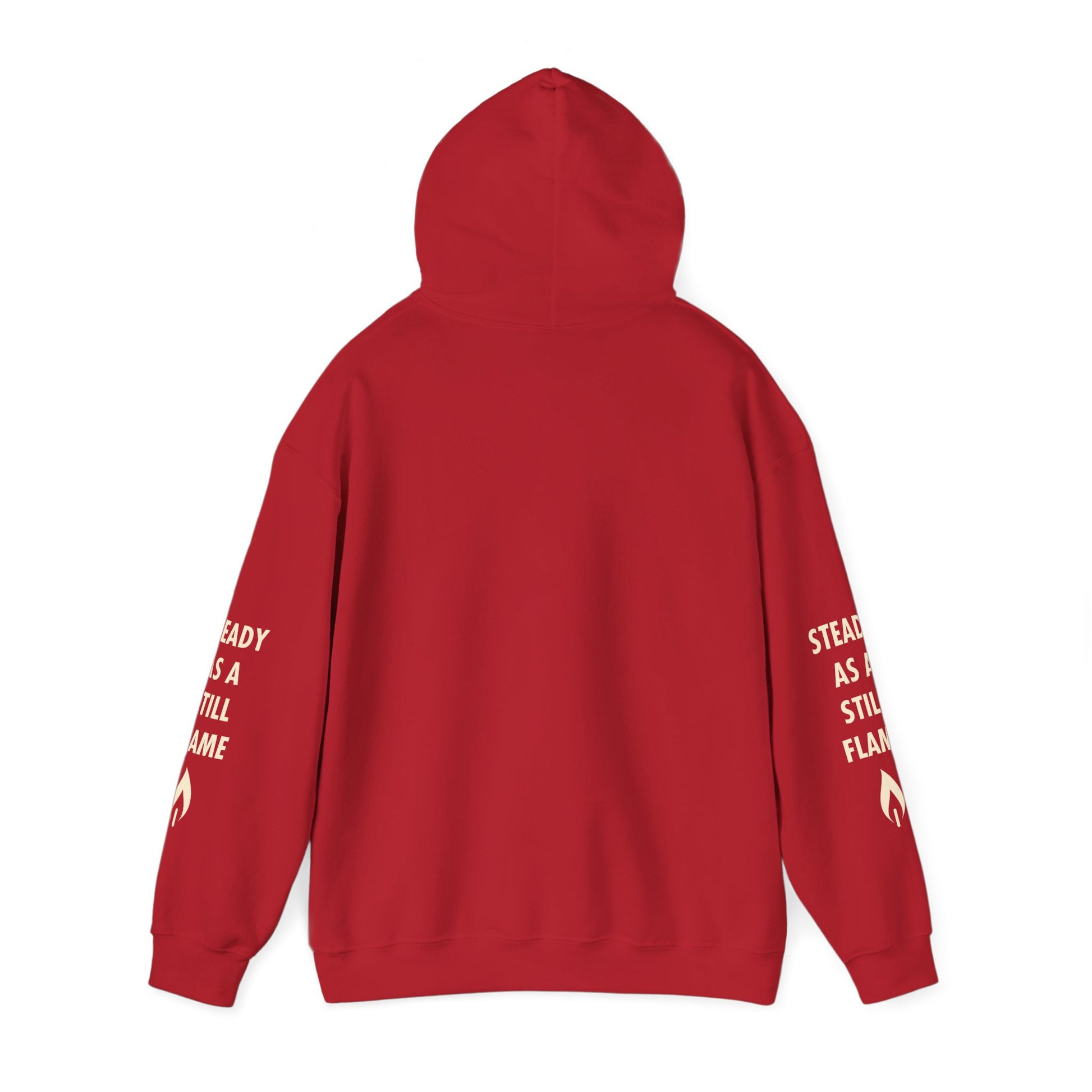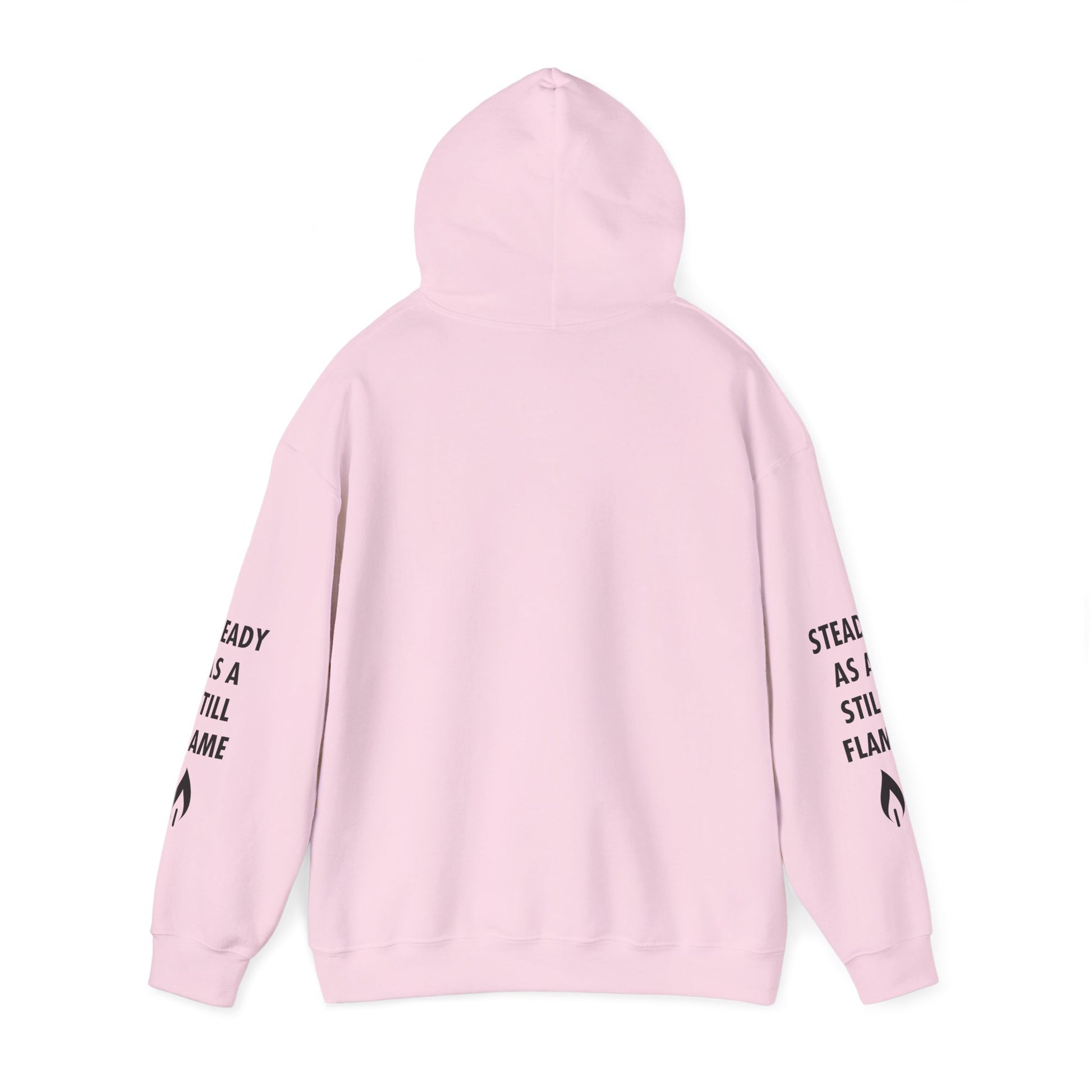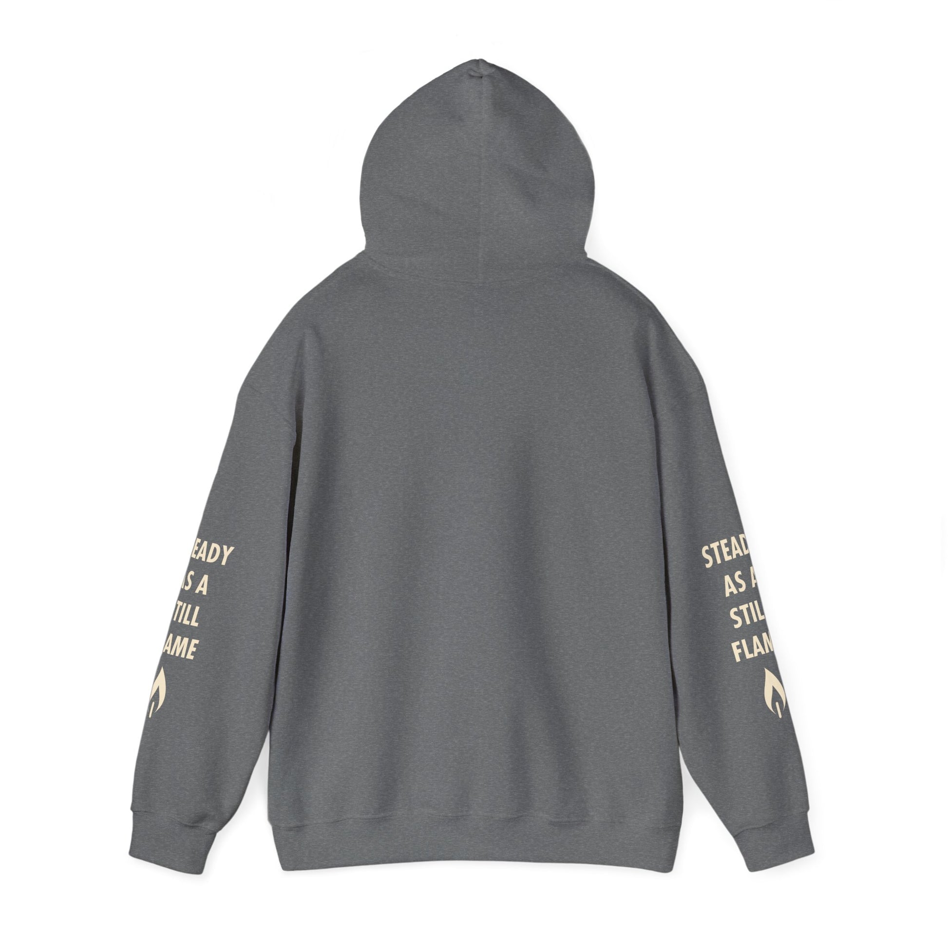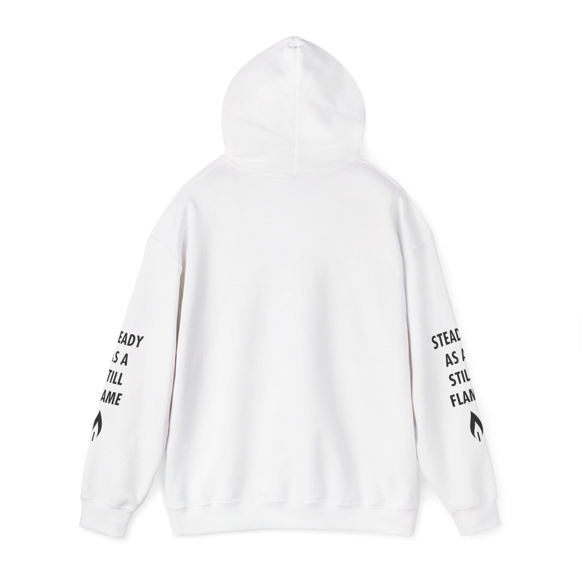 Subtle. Soulful. Strong. This hoodie isn't just warm apparel—it's an affirmation. One sleeve bears the quiet power of the quote “Steady as a still flame,” while the other showcases the Sanskrit word “स्थितप्रज्ञ” (Sthitaprajna) with a thick-line peacock feather—an ancient symbol of grace and clarity. Together, they reflect the essence of inner calm in a world that rarely pauses.
